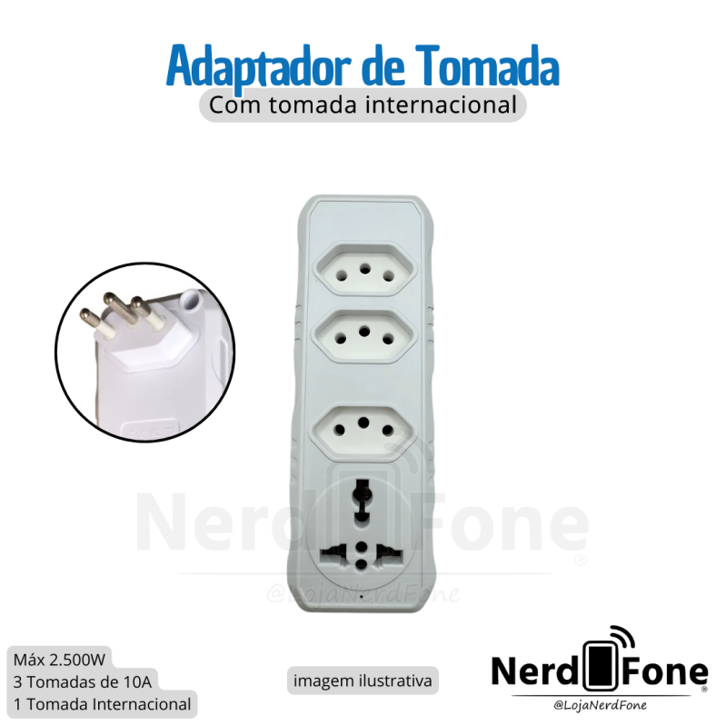 'metaTitulo' => 'ADAPTADOR DE TOMADA 10A 2500W; 3 TOMADAS 10A + 1 INTERNACIONAL - NERD FONE',