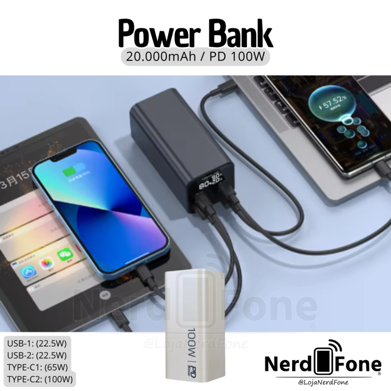 BATERIA PORTATIL 20.000MAH PEINING POWER BANK; 100W WT