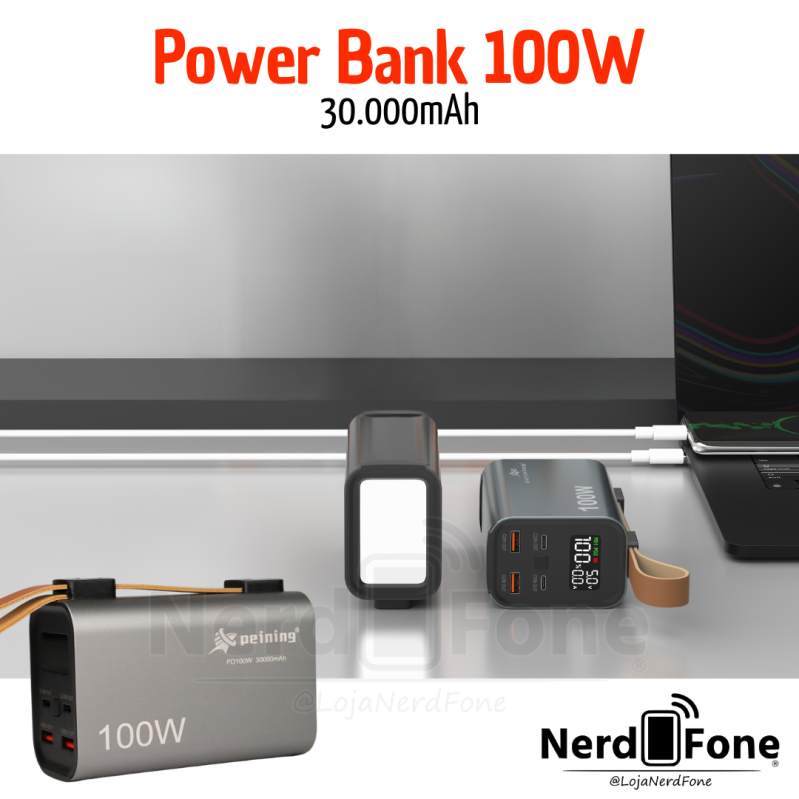 'metaTitulo' => 'CARREGADOR BATERIA PORTATIL TURBO PD 100W; PEINING 30.000mAh - NERD FONE',