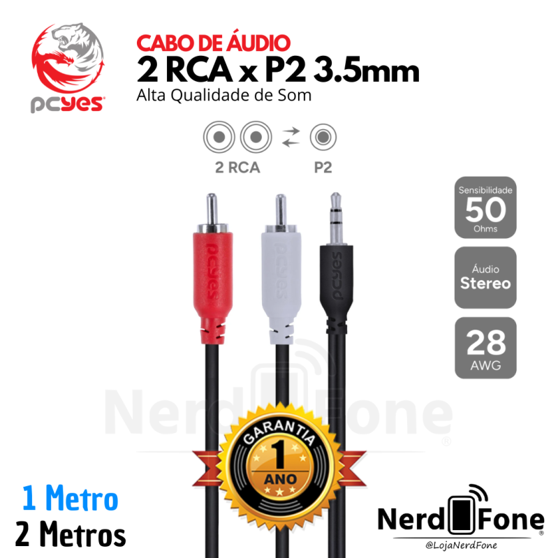 'metaTitulo' => 'CABO 2RCA x P2 3.5MM PCYES - NERD FONE',