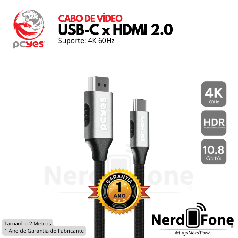 'metaTitulo' => 'CABO ADAPTADOR USB-C x HDMI 2.0 PCYES; 2METROS - NERD FONE',