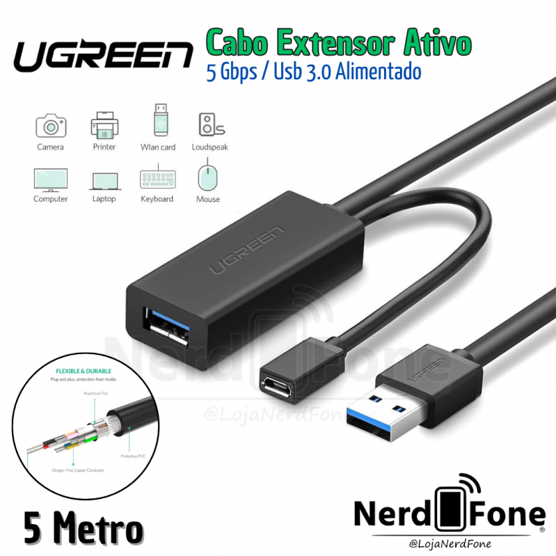 'metaTitulo' => 'CABO EXTENSOR USB 3.0 ATIVO UGREEN; 5METROS - NERD FONE',