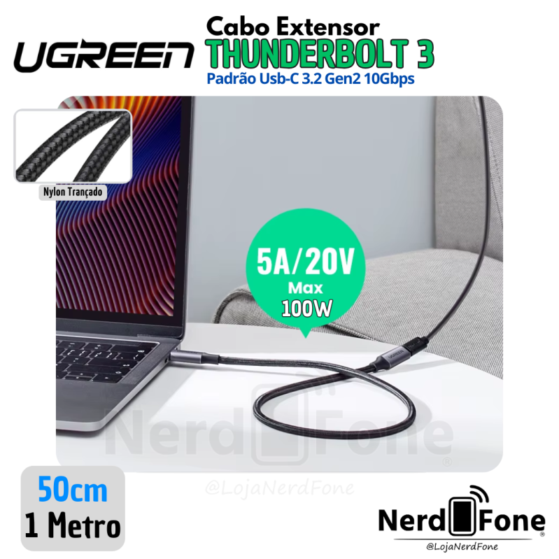 'metaTitulo' => 'CABO EXTENSOR USB-C 3.2 THUNDERBOLT 3 UGREEN - NERD FONE',