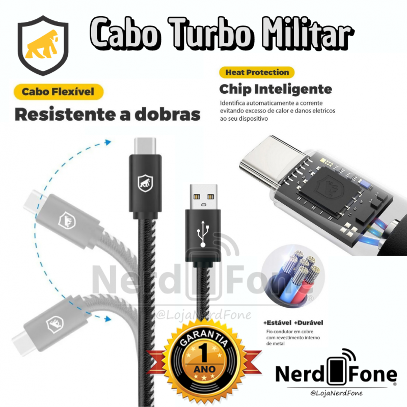'metaTitulo' => 'CABO TURBO MILITAR USB-A x USB-C 1.5M GSHIELD - NERD FONE',