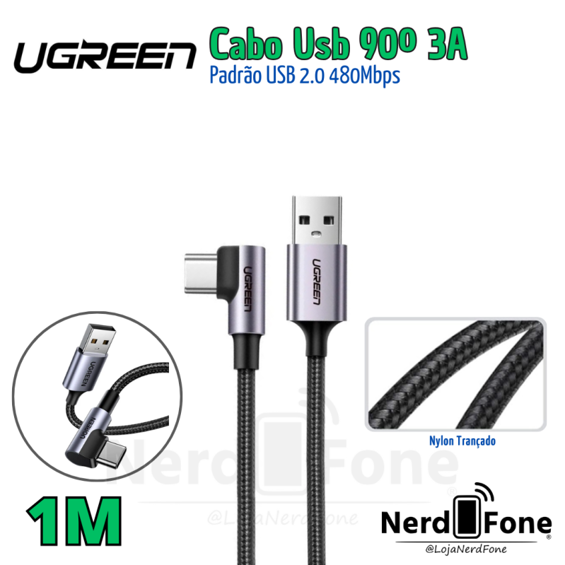 'metaTitulo' => 'CABO USB-A 2.0 x USB-C 3A 90° 1M UGREEN - NERD FONE',