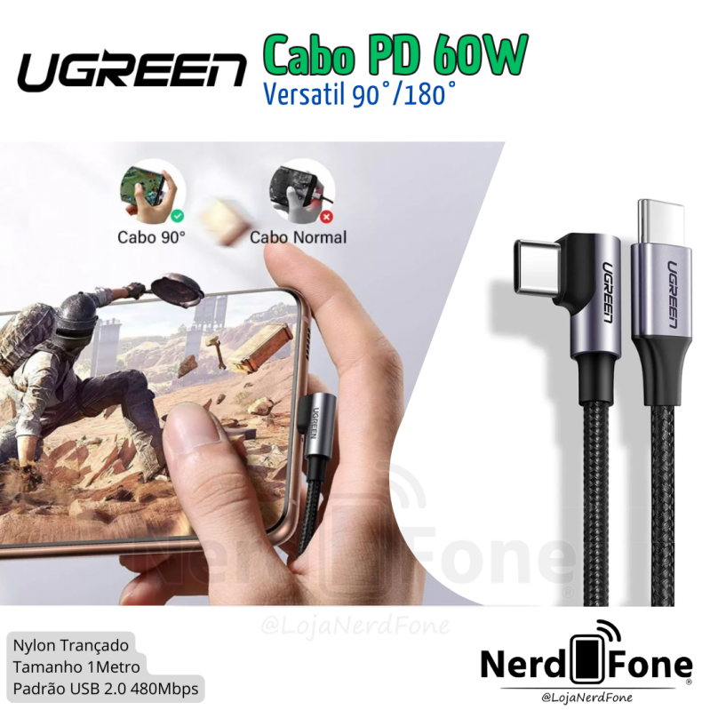 'metaTitulo' => 'CABO USB-C 2.0 x USB-C 90° 60W 1M UGREEN - NERD FONE',