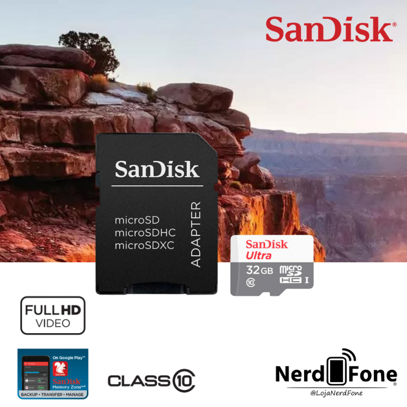 'metaTitulo' => 'CARTÃO MICRO SD SANDISK ULTRA; CLASSE 10 FHD mSD 032GB - NERD FONE',
