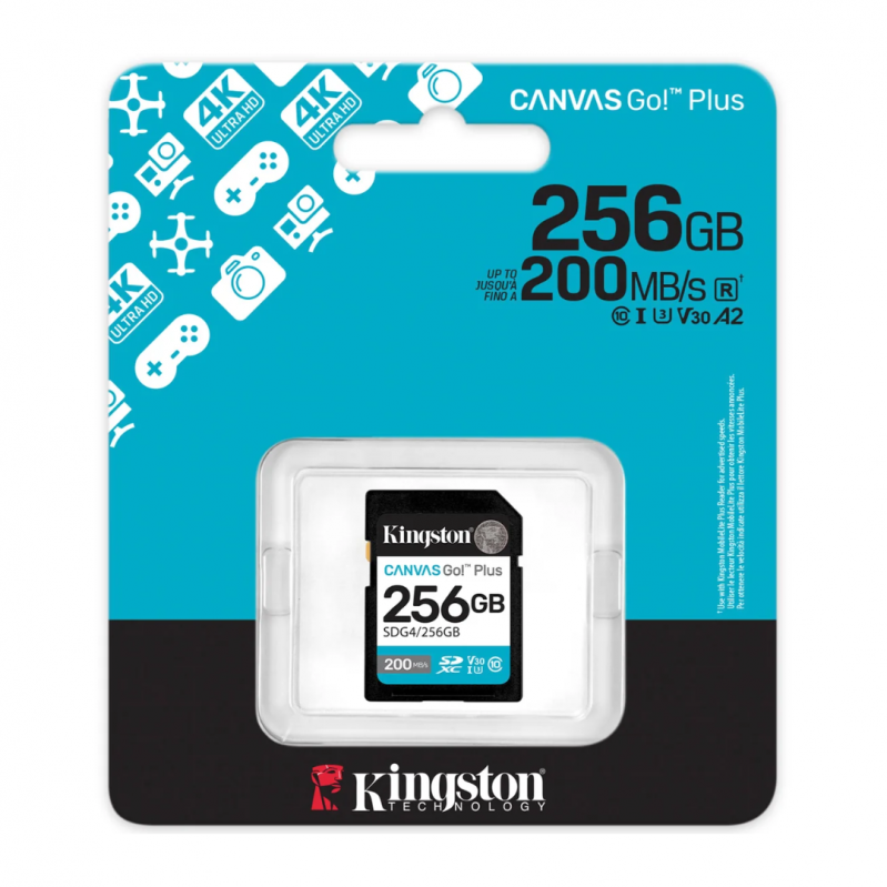 'nome' => 'CARTÃO SD KINGSTON CANVAS GO PLUS; V30 U3 4K A2 256GB; 200MB/S P/ CÂMERA',