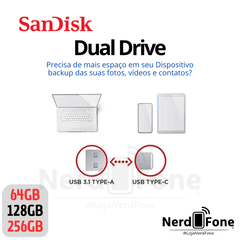 'metaTitulo' => 'DUAL DRIVE GO 3.1 SANDISK; PENDRIVE USB-A + USB-C - NERD FONE',