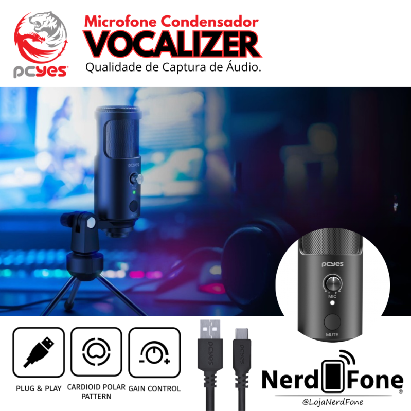 'metaTitulo' => 'MICROFONE CONDENSADOR USB PODCAST/LIVE VOCALIZER PCYES - NERD FONE',