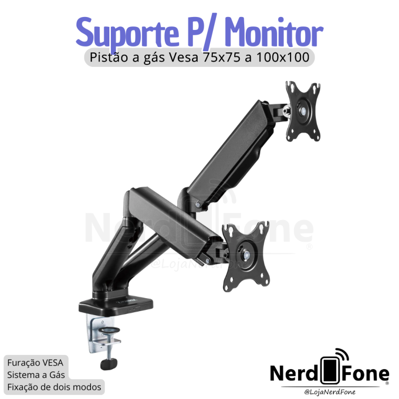 'metaTitulo' => 'SUPORTE A GÁS P/ 2 MONITORES FK - NERD FONE',