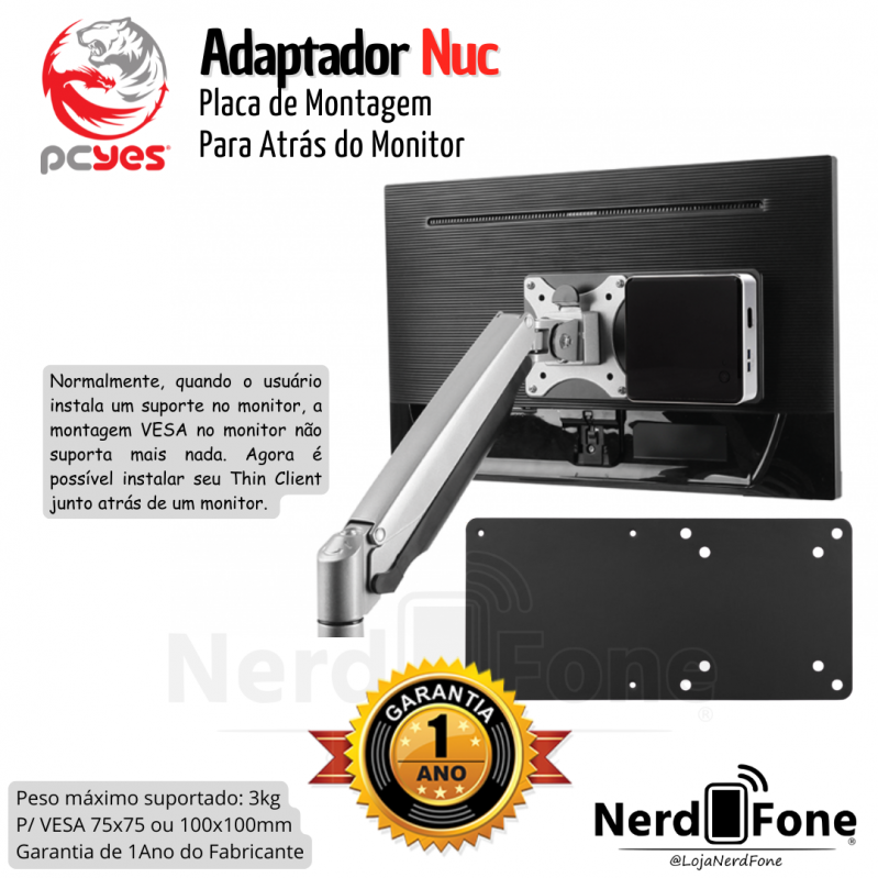 'metaTitulo' => 'SUPORTE PARA NUC MINI PC VESA P/ MONITOR PCYES - NERD FONE',