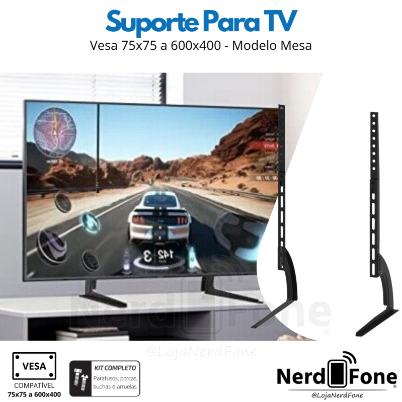 'metaTitulo' => 'SUPORTE PIX P/ TV FIXO BASE MESA; VESA 75x75 A 600x400 - NERD FONE',