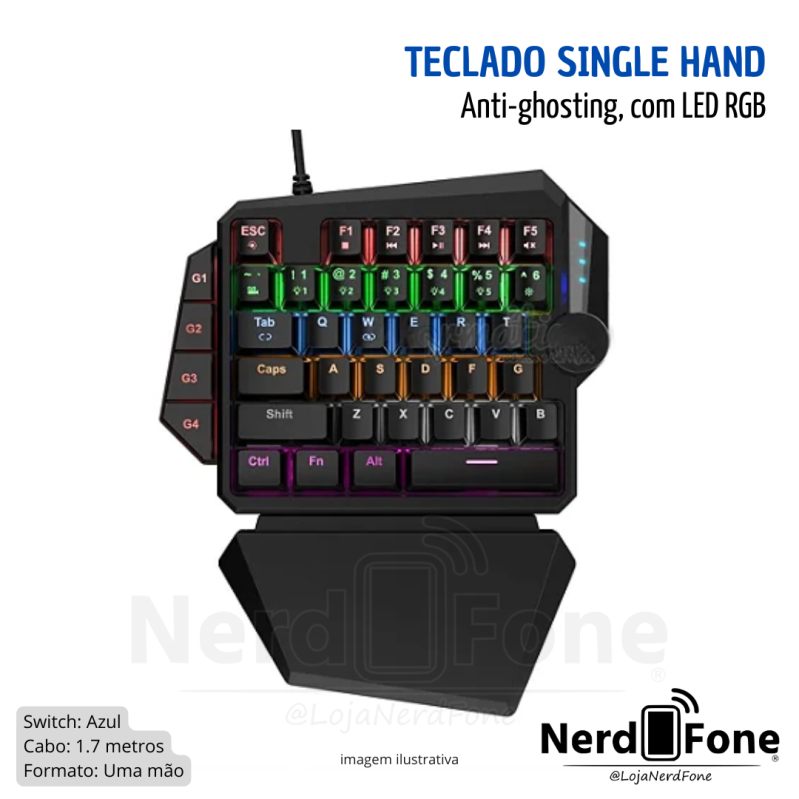 'metaTitulo' => 'TECLADO MECÂNICO USB SINGLE HAND ANTIGOSTHING SWITCH BLUE KNUP - NERD FONE',